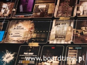 Gra jest dość prosta mechanicznie. Skonstruowana została w ten sposób, by po otwarciu pudełka i rozłożeniu kilku elementów, można było zacząć grę. W pierwszej (pełnoprawnej) rozgrywce (bynajmniej nie tutorialowej) uczymy się po prostu stopniowo poszczególnych elementów. Sporo zasad znajdziemy na kartach w momencie ich rozpatrywania. Dodatkowo postępujemy krok po kroku wykonując akcje wskazane w dzienniku, który po prostu prowadzi nas za rękę. Gra jest podzielona na rundy/dni. Te zaś na fazę dnia i nocy. W ciągu dnia możemy np. doprowadzać dom do porządku, wynajdować nowy sprzęt, czy nawet wyjrzeć na chwilę na zewnątrz. W nocy zaś albo odpoczywamy, albo ruszamy na łowy – to wtedy możemy znaleźć sporo jedzenia/sprzętu, ale także spotkać niebezpiecznych ludzi czy nawet zginąć. Niebezpieczeństwo czai się gdzieś tam w mroku, ale nie ma co siedzieć z założonymi rękami.