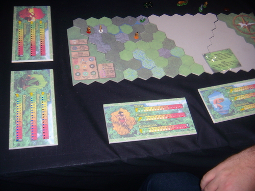 Plansza jest modularna, a jej fragmenty odkrywamy z czasem [co jest naturalne, zważywszy na fakt, że nie znamy przecież miejsca, w którym zostaliśmy porzuceni]. Co również interesujące, każdy jest całkowicie odmienny: ma swoje specyficzne właściwości. Górzysty utrudnia ruch, a np. w lesie żyje więcej stworzeń. To główny czynnik odpowiadający za to, by doznania z każdej gry były inne. Pozostaje jeszcze tylko wspomnieć o fakcie, iż można przystąpić do rozgrywki krótszej z czterech kafli, jak i dłuższej, na którą składają się wszystkie, osiem kafli.