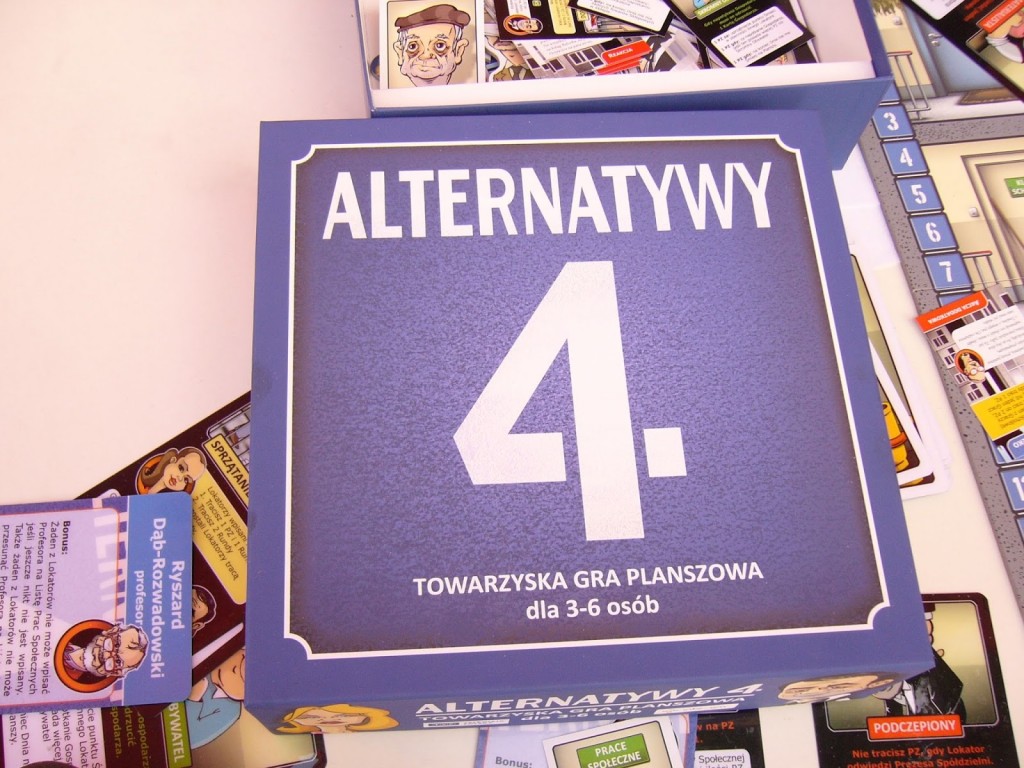Jesienią kolejny serial doczeka się planszowej wersji. Tym razem będą to kultowe Alternatywy 4. Autorami gry są Maja Mirska i Robert Sypek. Autorem ilustracji jest Grzegorz Sobczak. W grze wcielimy się w postacie znanych i sympatycznych bohaterów tego serialu. Każdy będzie starał się o to, by jak najwygodniej mieszkało mu się w bloku. 31 sierpnia tytuł ten miał swoją prapremierę podczas Festiwalu Gier i Zabaw Radość Z Wygrywania. O grze opowiada jej autor – Robert Sypek.
