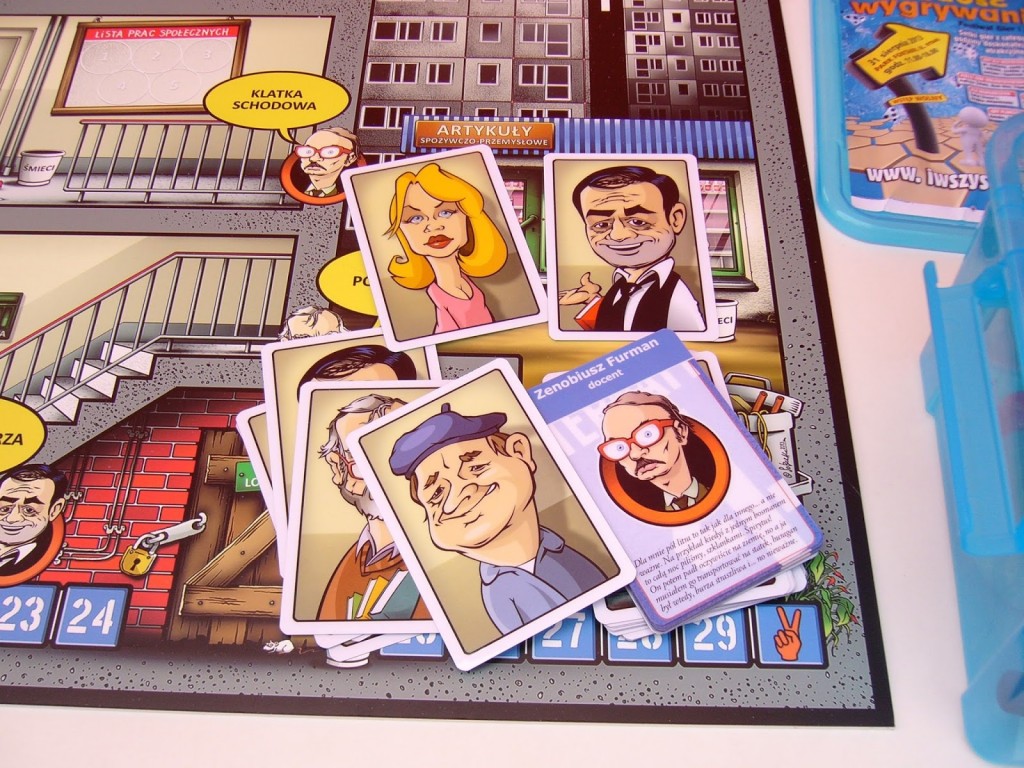 Staraliśmy się, żeby gra była ładnie i ciekawie zilustrowana. Zawiera rysunki nawiązujące do serialowych postaci i wydarzeń. Jest piękna, kolorowa plansza. Mamy też 110 różnych kart. Nie ma jednego pomysłu jak wygrać rozgrywkę. Każda z postaci filmowych może posiadać różne cechy. Lokatorzy mogą wybierać spośród takich cech, jak np. spokojny obywatel, kapuś, cwaniaczek, przewodniczący komitetu blokowego, czy spekulant. Gospodarz może wybrać spośród takich cech, jak: Tajny Współpracownik, Społecznik, Materialista, Karierowicz, czy Podczepiony. Ten wybór ma duże znaczenie bowiem każdą postacią gra się „troszkę” inaczej.
