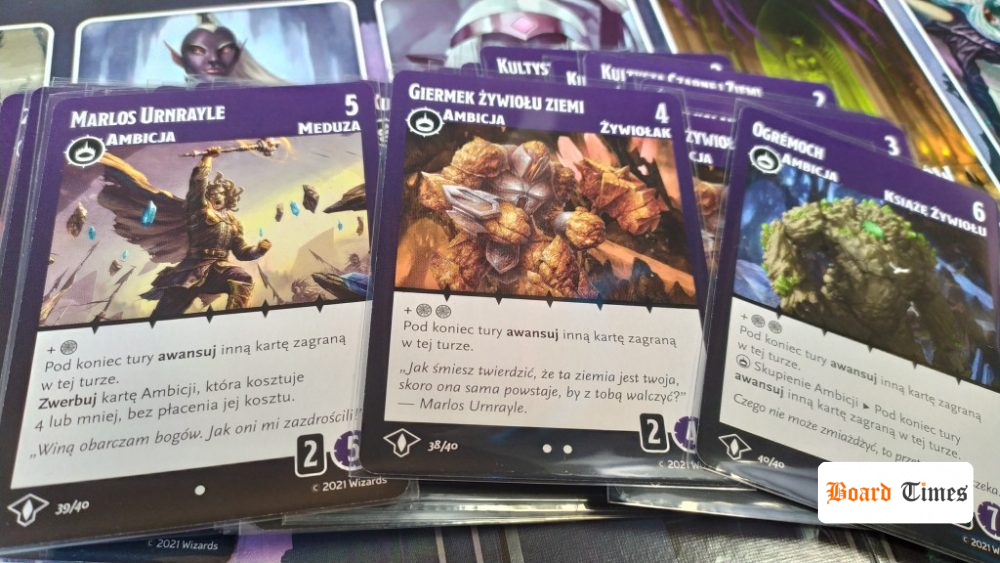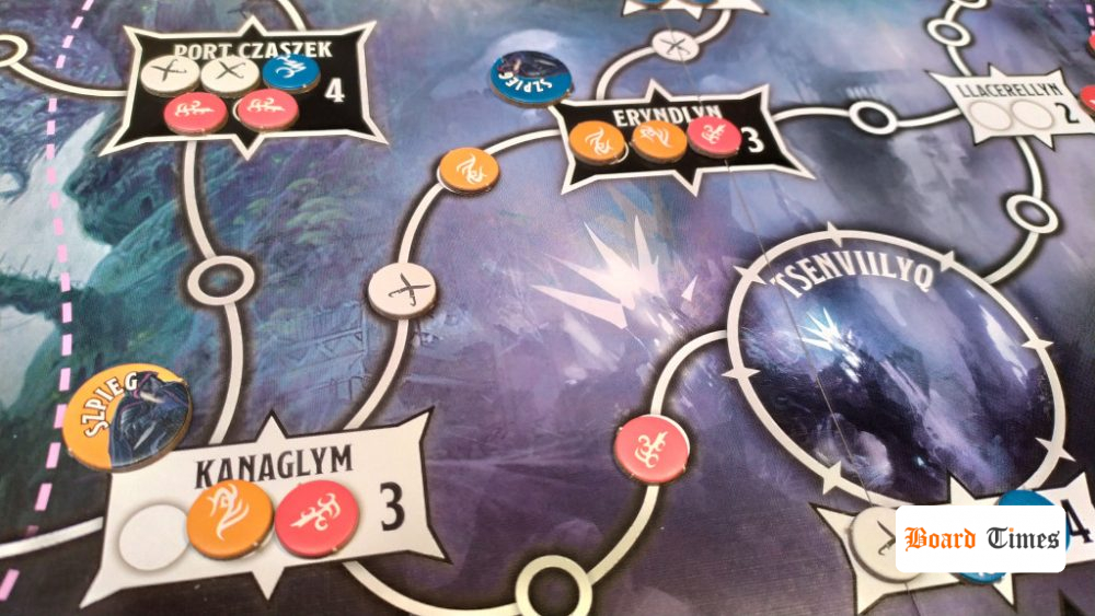 Na samych kartach znajdziemy również specjalne działania, które pozwolą budować nam kombinacje i powiększać swoją kontrolę. Np. Wyparcie, które pozwoli nam zmienić wrogi oddział na własny, przesuwanie oddziałów, pożeranie kart z rynku, czy właśnie wysyłanie szpiegów, dzięki którym uzyskamy Obecność nawet w odległych terenach.