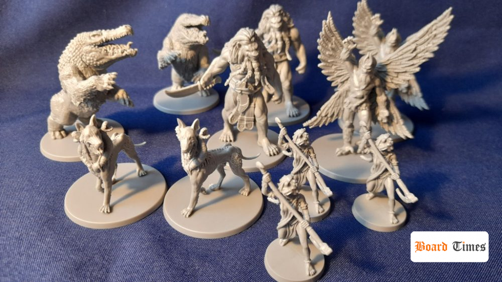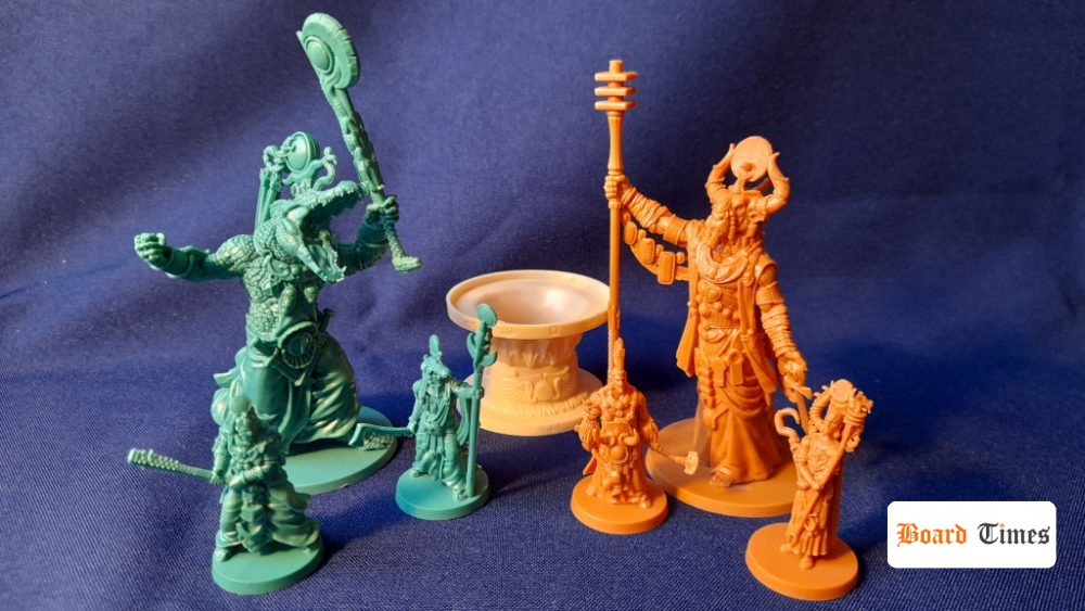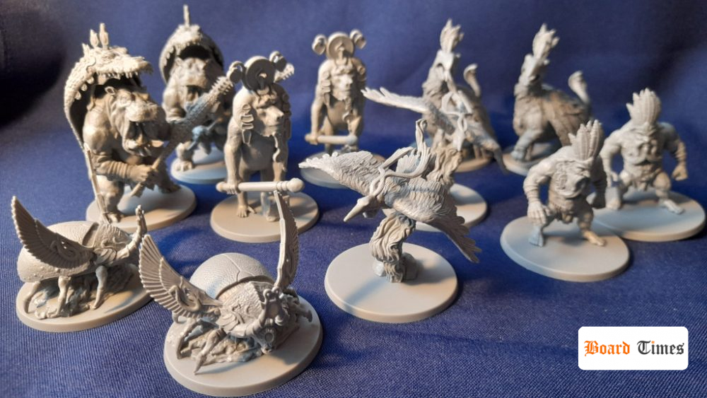 Figurki robią tutaj jednak niesamowity klimat, a plastikowe znaczniki i monumenty są o wiele lepiej widoczne na planszy niż kartonowe żetony z wersji sklepowej, więc spodziewam się podobnych akcji jak w przypadku Rising Sun, kiedy to gracze z miejsca tłumnie ruszyli na poszukiwania opcji drukowania 3D we w miarę przystępnej cenie. Tak samo jest w przypadku dodatku Pantheon. Oczywiście możemy użyć figurek bogów i wojowników oraz planszetek i kart z gry podstawowej, ale figurki z tego dodatku są naprawdę warte posiadania i wystawienia na planszy. Cieszą oko, robią klimat i sprawiają, że rzeczywiście mamy wrażenie toczenia batalii w fantastycznych realiach. U podstaw mechanicznych gry leżą: szachowa strategia i suche obliczenia znane z niemieckich gier ekonomicznych, ale dzięki oprawie wizualnej klimat Starożytnego Egiptu jest wszechobecny.