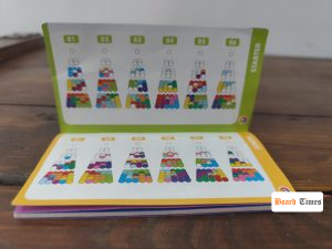 W IQ Puzzler PRO mamy aż trzy tryby rozgrywki – dwa warianty „na płasko” i jeden w formie przestrzennej piramidki. Zasady są jednak zawsze podobne: wybieramy zagadkę z książeczki, ustawiamy początkowe elementy zgodnie z podanym wzorem, a następnie musimy dopasować pozostałe klocki tak, by wypełnić całą planszę lub zbudować stabilną konstrukcję. Brzmi prosto, ale poziomy trudności są różne, więc niektóre łamigłówki potrafią solidnie dać w kość!