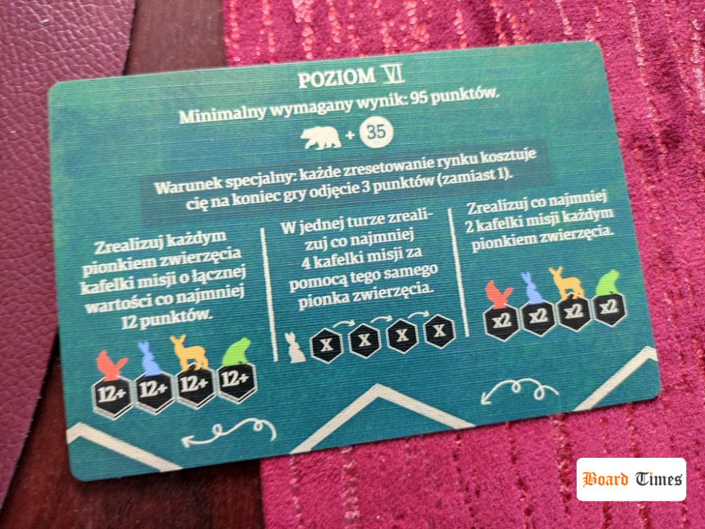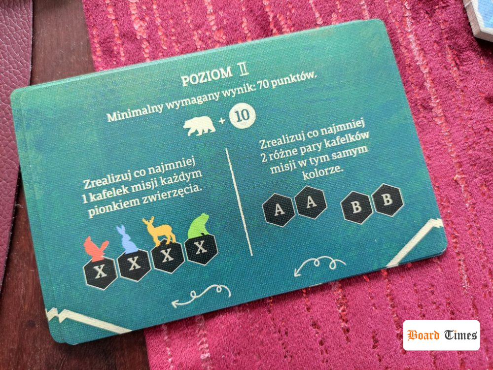 - albo przekręca jeden z kafelków, by posłużył jako misja do zrealizowania (na taki kafelek układamy nasz pionek zwierzęcia)