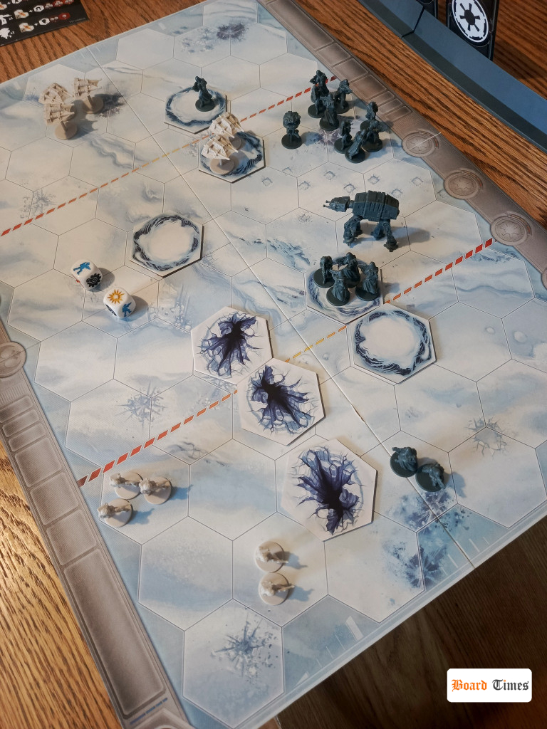 Taktyczna gra bitewna dla dwóch osób (z wariantem drużynowym dla czterech graczy), osadzona w realiach Gwiezdnych Wojen, a konkretnie na tytułowym starciu, które mogliśmy oglądać w Imperium kontratakuje. Mamy tu zarówno jednostki znane z uniwersum jak i potężnych dowódców, których losy śledziliśmy w filmie. Mechanika to lżejsza i szybsza wariacja znana z Memoir ’44. Gracze dowodzą siłami Imperium (w tym maszynami AT-AT) lub Rebelii, zagrywając karty rozkazów, by aktywować jednostki w konkretnych sektorach planszy. Celem jest realizacja założeń scenariusza, zazwyczaj poprzez zniszczenie wroga. Zasady są bardzo łatwe do wyjaśnienia po kilku pierwszych turach gra się już zupełnie płynnie. Jest tu trochę myślenia, są emocje wynikające z losowości, a krótki czas rozgrywki pozwala na zagranie rewanżu w tym samym podejściu.